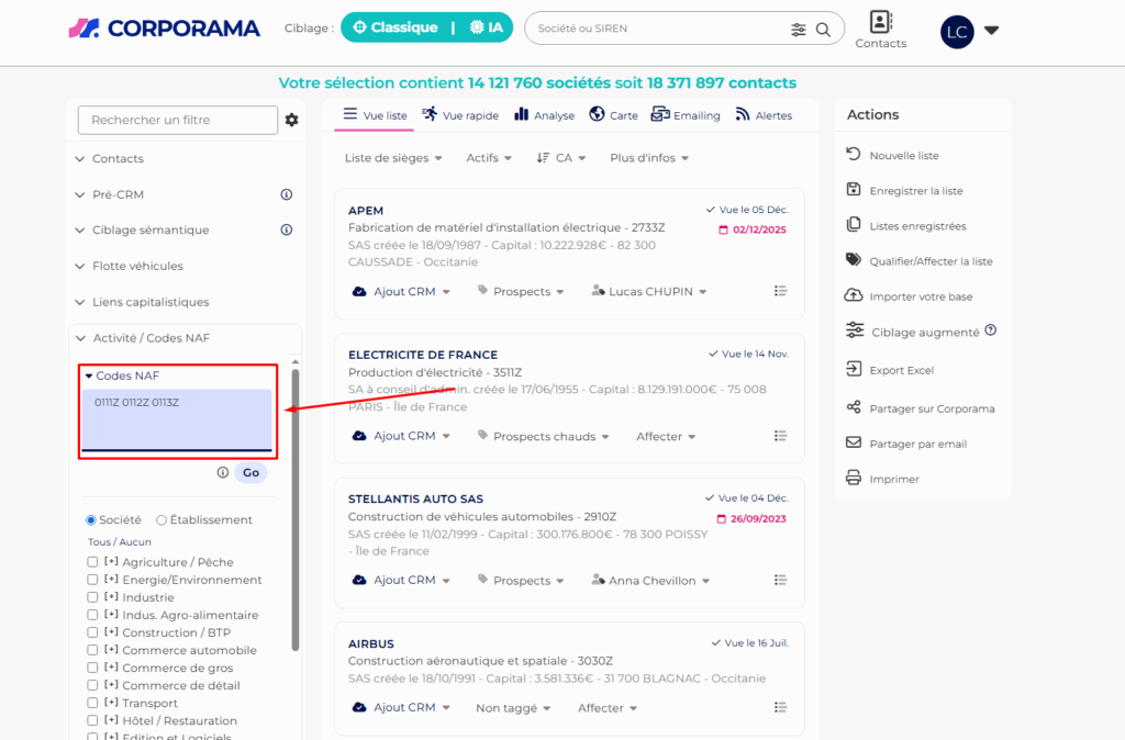 👉 Cette étape permet d’affiner votre marché au-delà du simple code NAF.