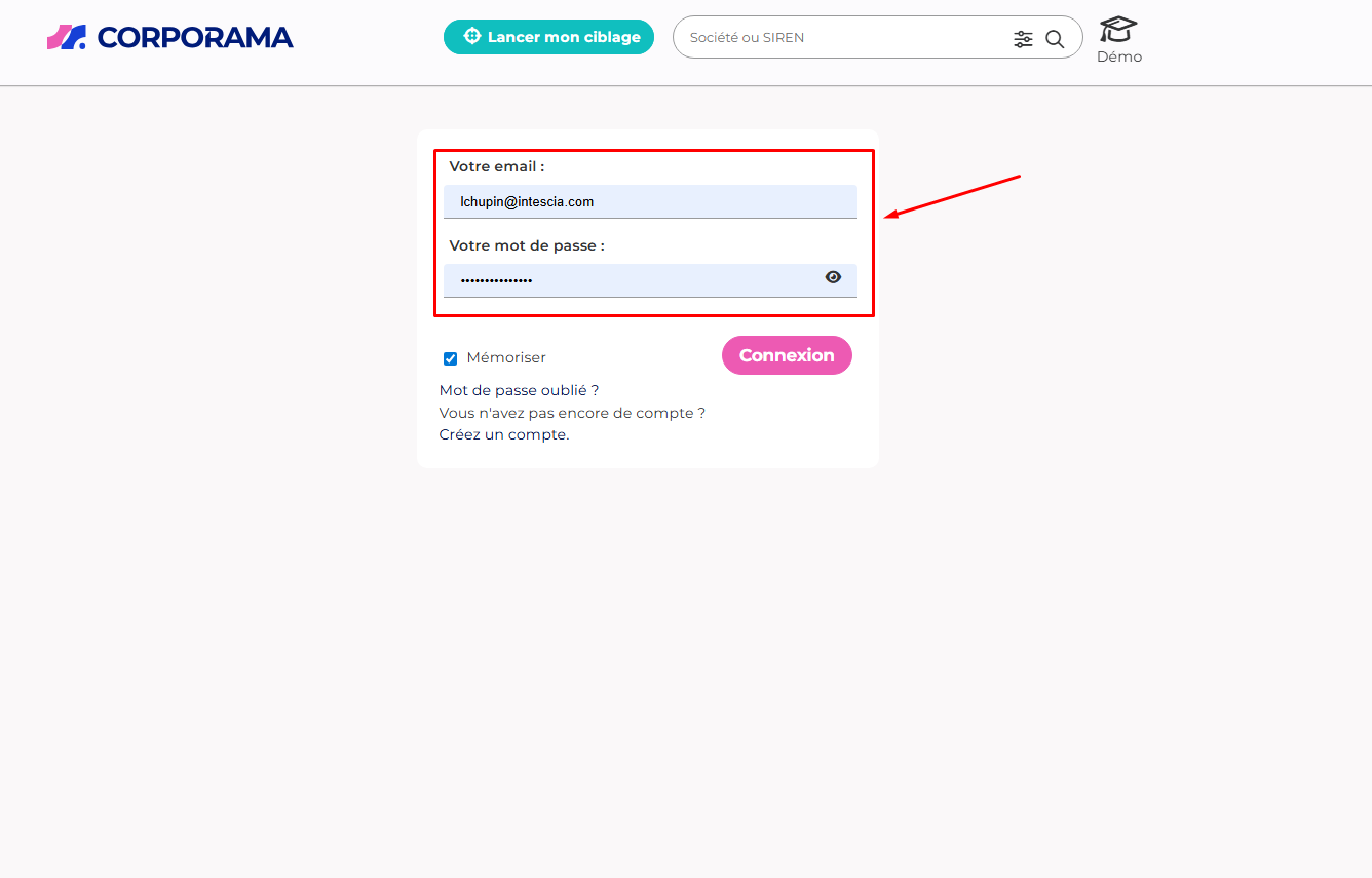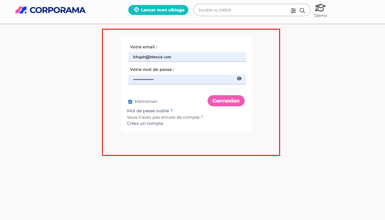 La connexion s’effectue depuis la page dédiée de Corporama.