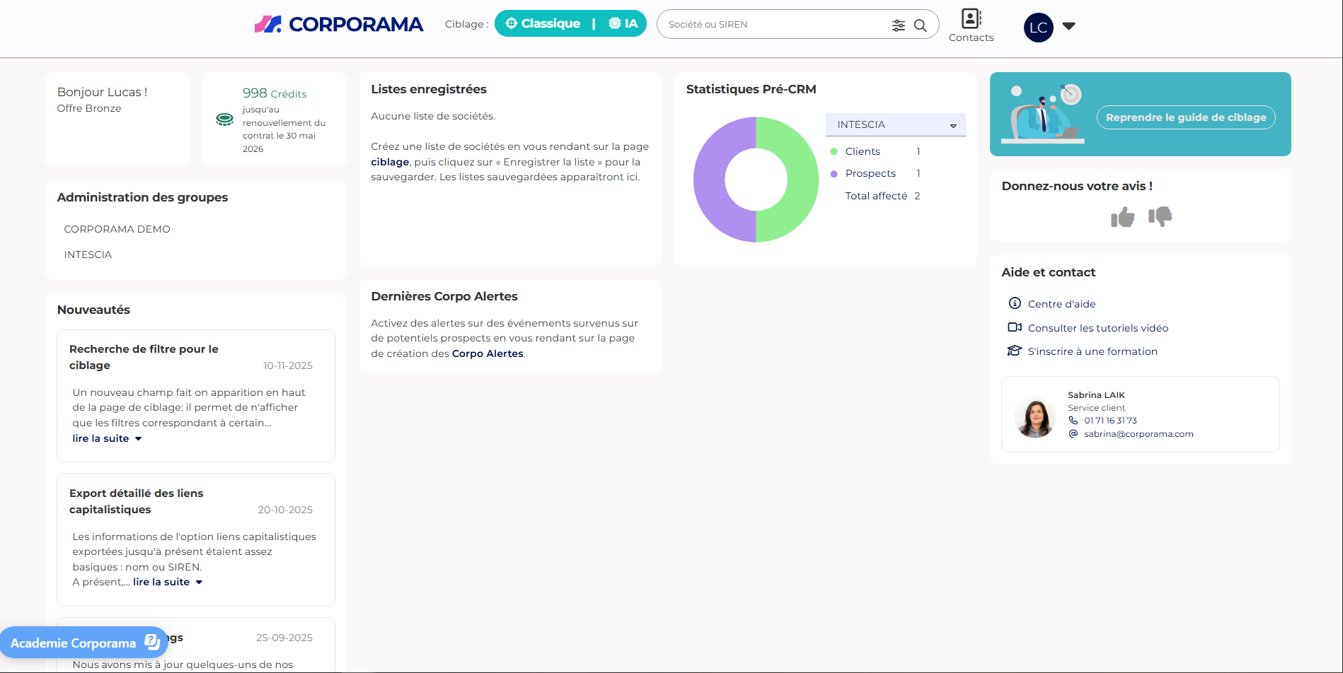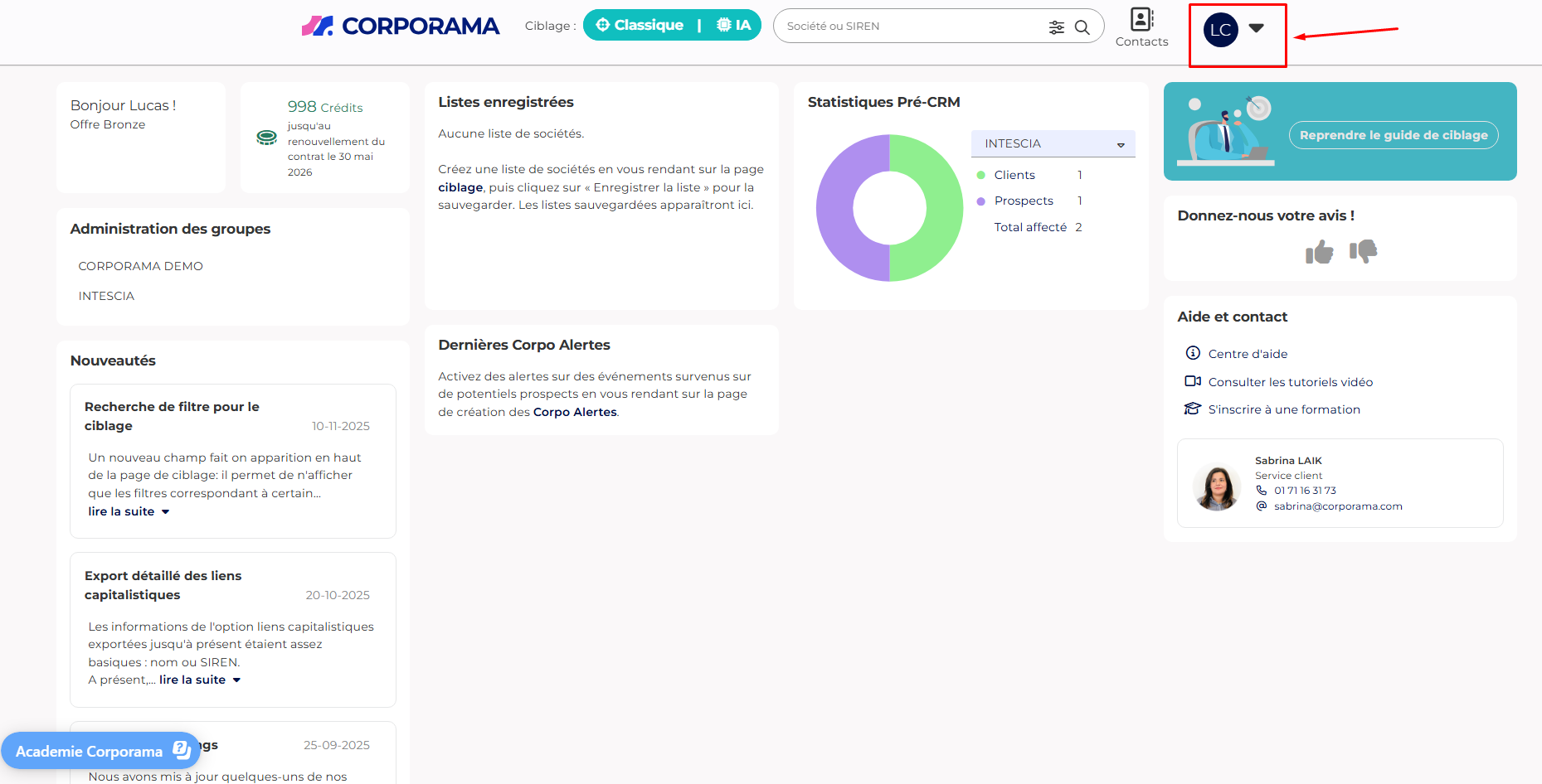 Après avoir cliqué sur le bouton « Connexion », vous pourrez accéder à votre espace Corporama.