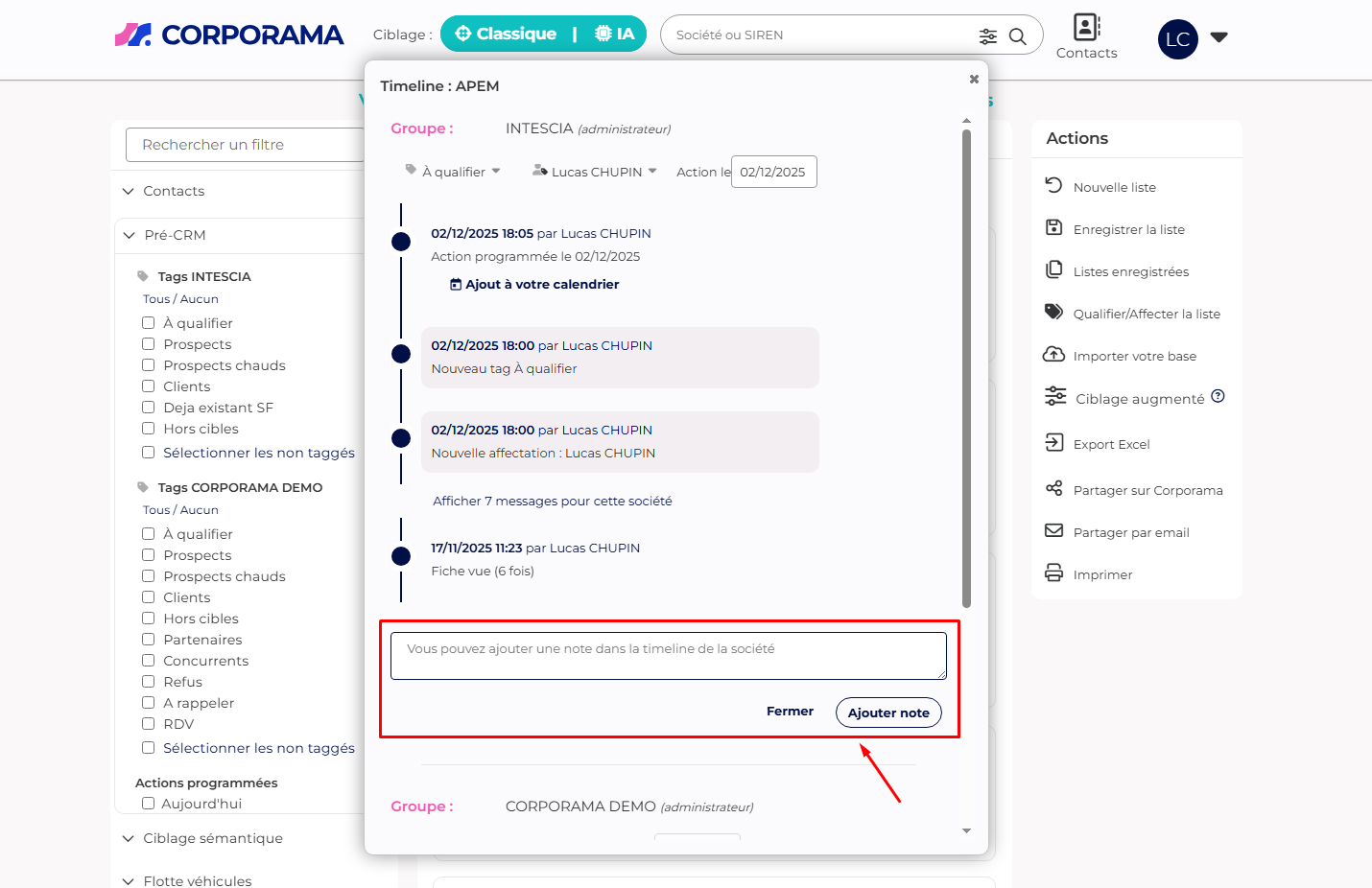 Le Pre-CRM de Corporama vous permet de qualifier, organiser et suivre votre prospection en quelques clics, tout en facilitant la collaboration au sein de votre équipe.