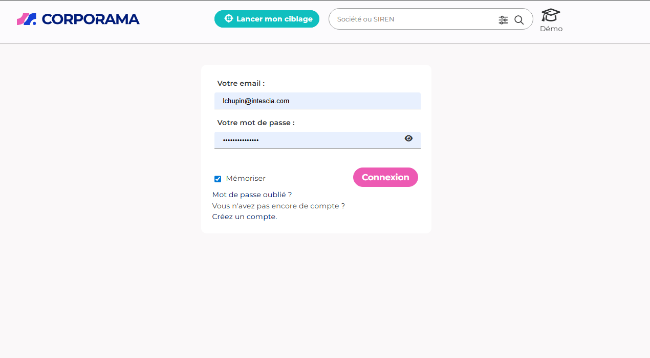 Rendez-vous sur la page de connexion Corporama
