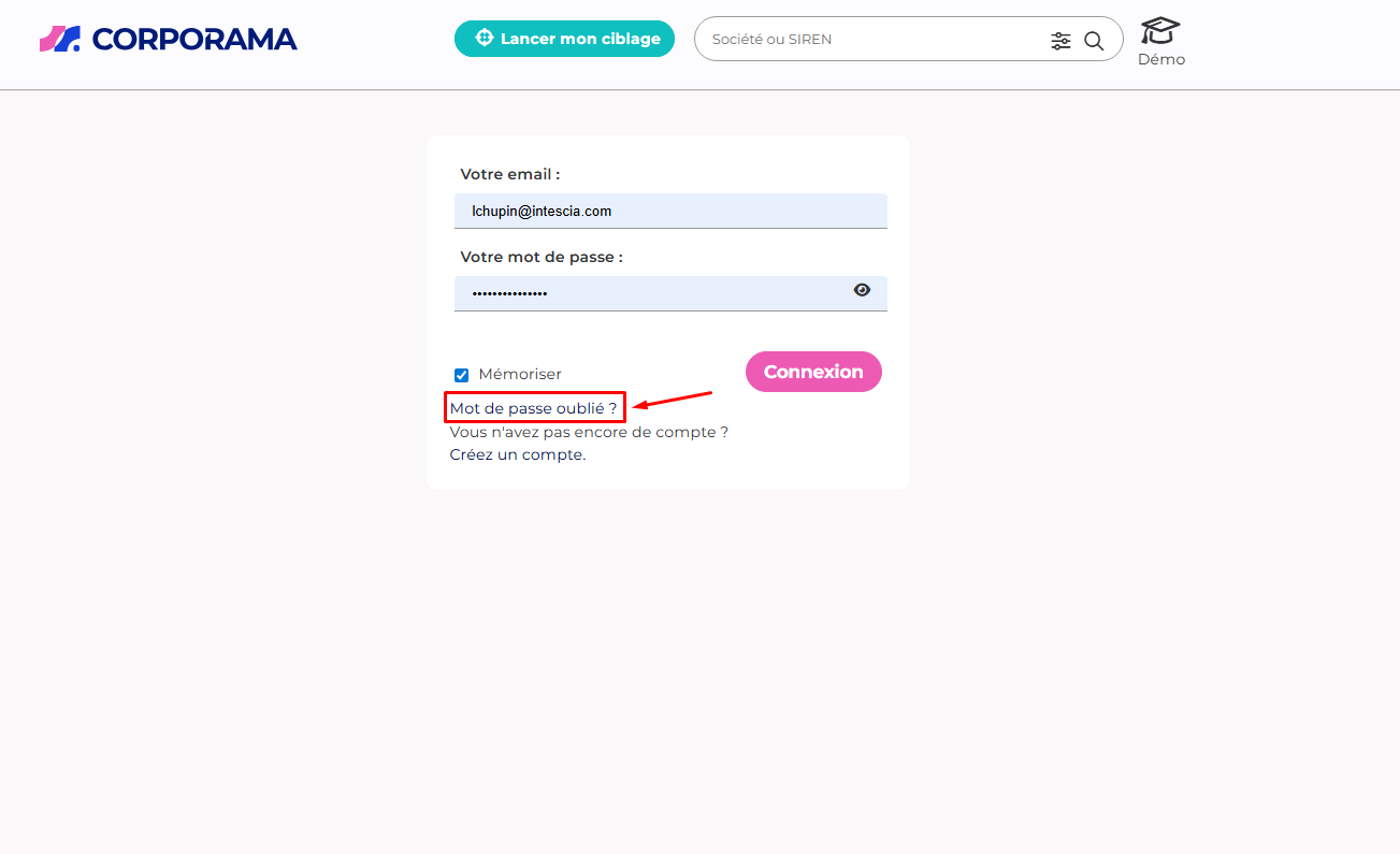 Depuis la page de connexion Corporama