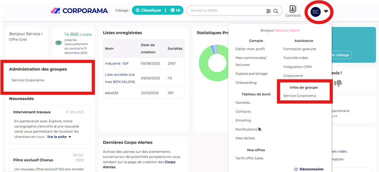 Vous accèderez à cette fonctionnalité depuis l'écran d'accueil Corporama.